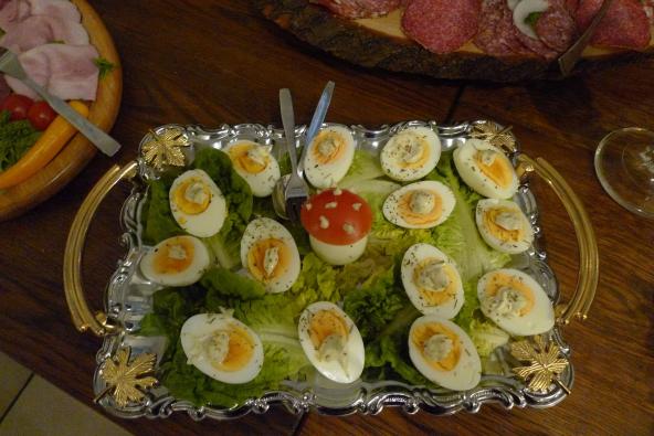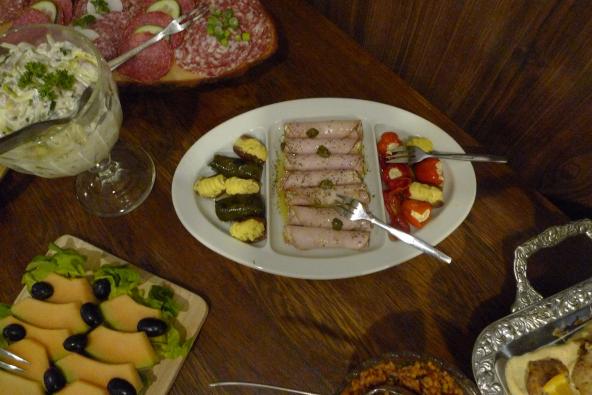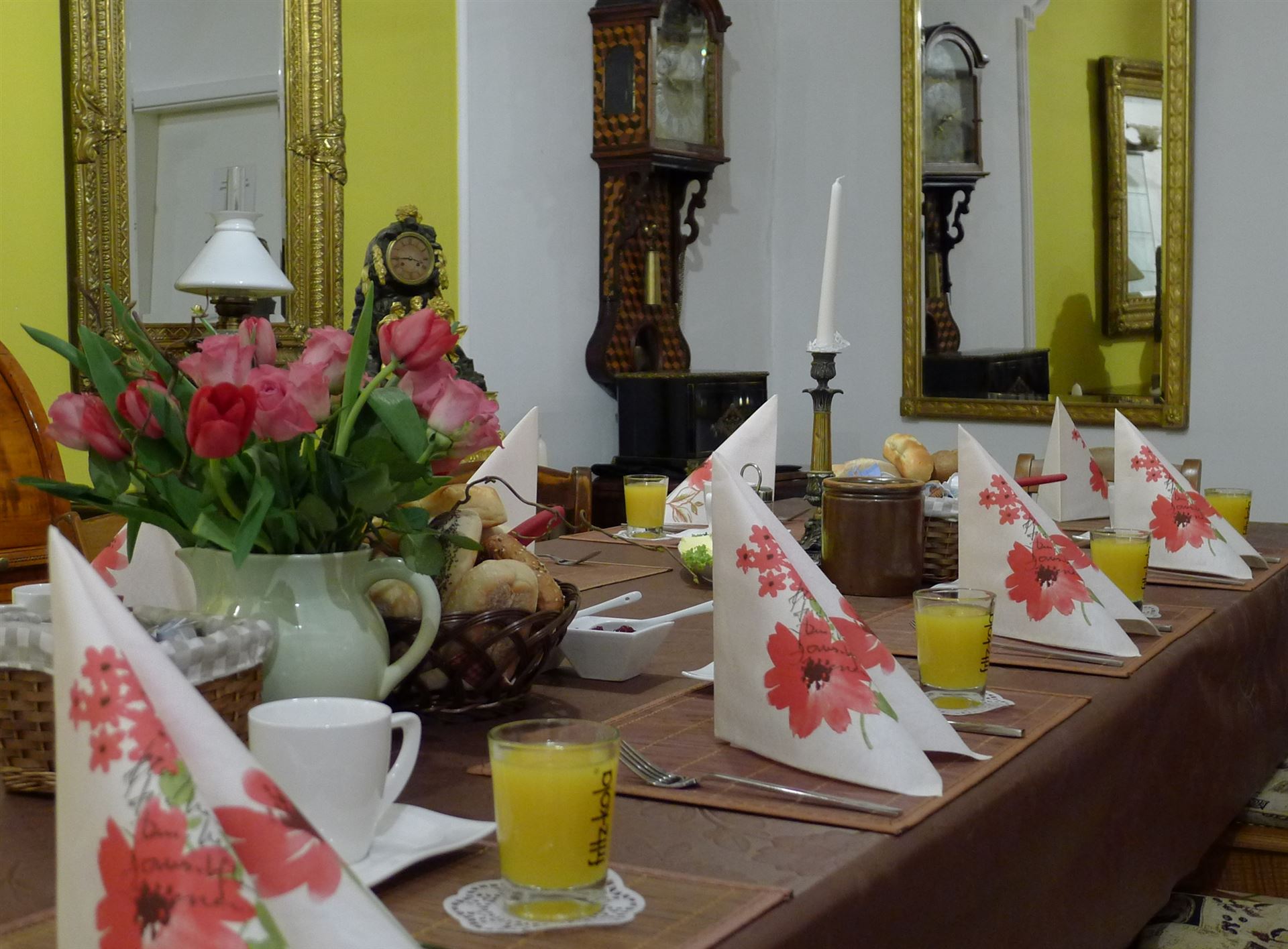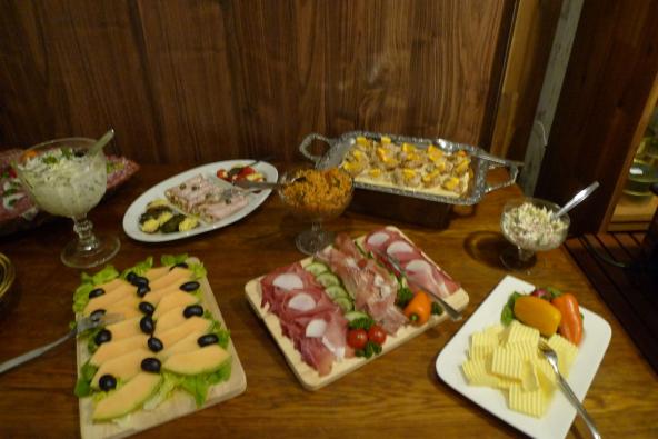 Einmal im Monat bieten wir ein reichhaltiges Sonntagsfrühstück in Buffetform an. Dies beinhaltet hausgerösteten Kaffee satt, Tee, ein Glas Orangensaft, Butter, hausgemachte Marmelade, Honig, Früchte mit Joghurt, diverse Wurstwaren (Schinken, Mettwurst), verschiedene Käsesorten, Rührei, gekochte Eier, Lachs, Antipasti, unterschiedliche Salate, Tomaten mit Mozzarella sowie weitere hausgemachte Köstlichkeiten.