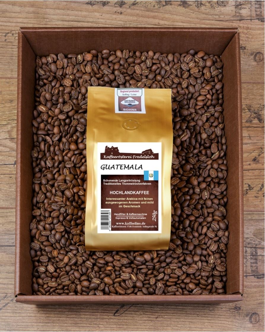 Ein besonders schöner und aromatisch hochwertiger Arabica-Kaffee wächst auf den Feldern von Guatemala. Er zählt zu den besten Kaffees der Welt. Die feine Säure und der exquisite Geschmack sind bestechend. In Guatemala gibt es einen besonders durchlässigen Vulkanboden, der reich an Nährstoffen ist und somit optimal geeignet für das Gedeihen von hochwertigen Kaffeepflanzen. Die Strictly Hard Bean (SHB)-Kaffees werden in Höhen von 1.200 und 1.600 Metern angebaut. Die “Cru -Pflanzen aus Tarrazu und Tres Rios gelten als die besten Kaffees aus Guatemala und damit weltweit.