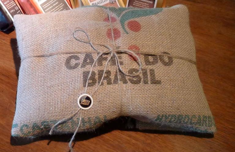 Das Ganze nett als Kaffeepaket in einen Original Kaffeesack eingeschnürt!